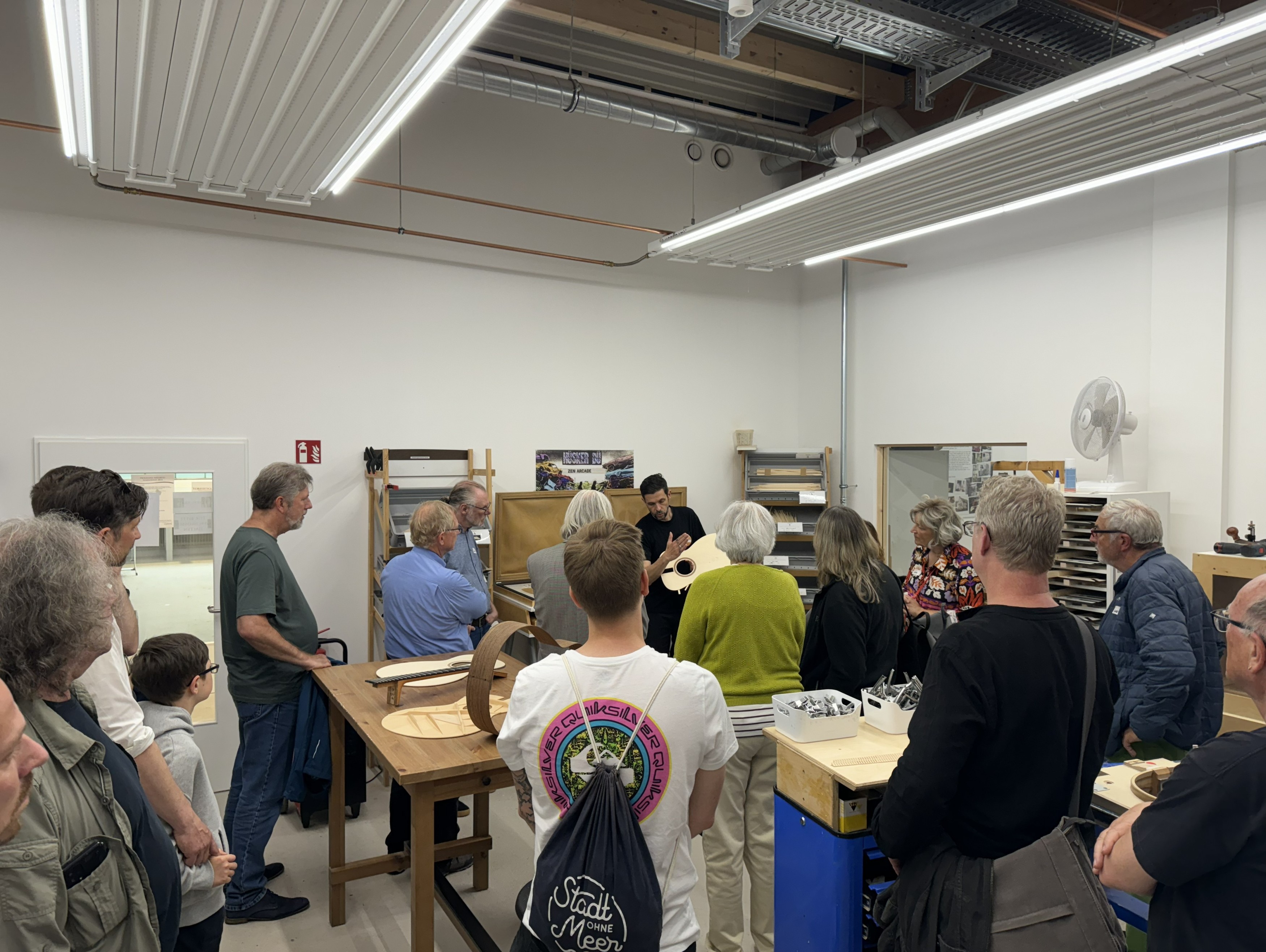 Einmal im Monat – immer am vorletzten Freitag – öffnen wir unsere Türen für Besucher. Zwischen 10 und 16 Uhr kannst du vorbeikommen. Die geführte Besichtigung startet um 10:30 Uhr und dauert ca. 2 Stunden.Erlebe hautnah, wie unsere Gitarren entstehen, lerne die Tonhölzer kennen und stelle deine Fragen direkt vor Ort. Du kannst Gitarren ausprobieren, Gitarren und Zubehör erwerben oder dich einfach zum Customshop beraten lassen.